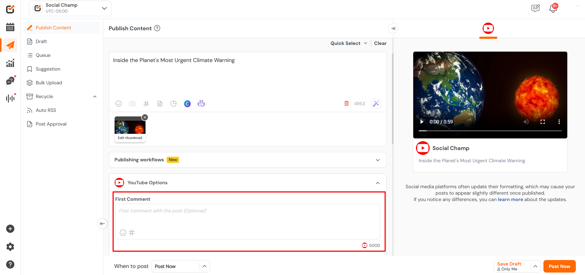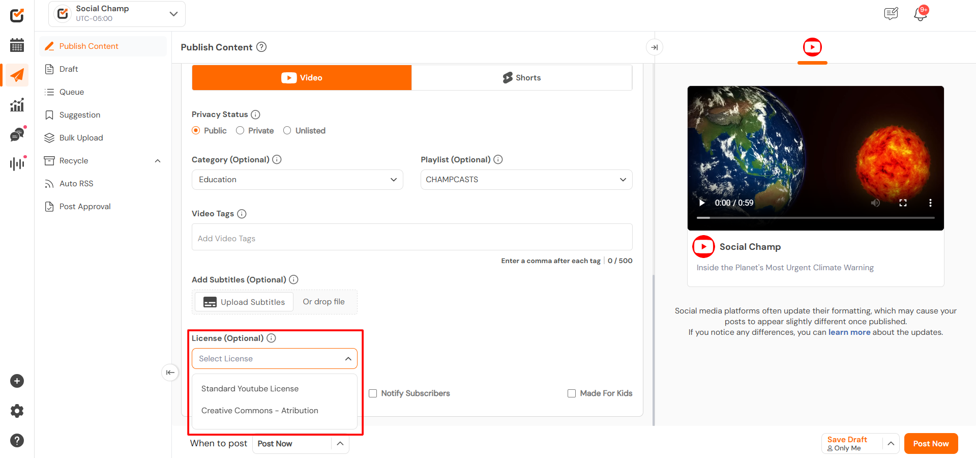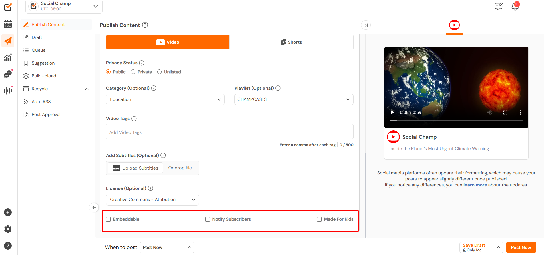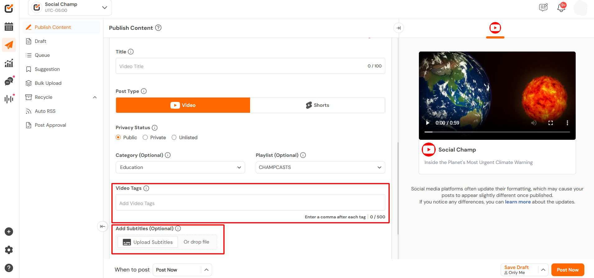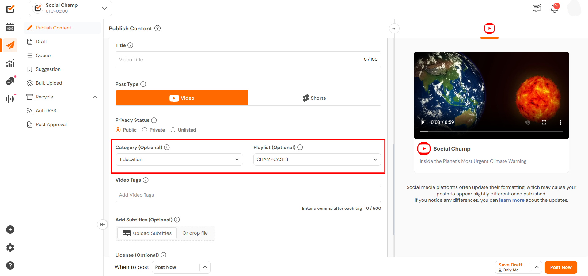 Enhance your content strategy and engage your audience with YouTube video scheduling. Follow this step-by-step guide to schedule videos on your YouTube channel using Social Champ seamlessly.